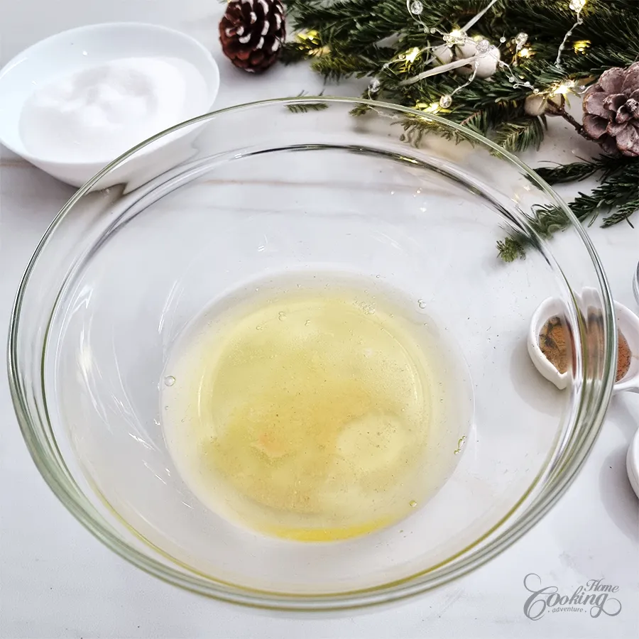 - Sprinkle the cornstarch over the meringue, add vinegar and vanilla.