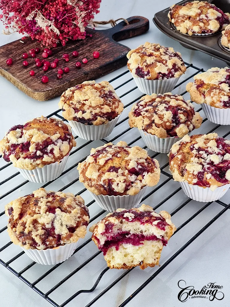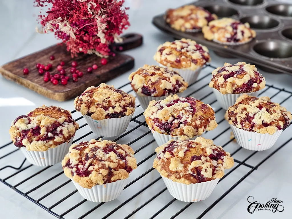 They come out golden with a light, crunchy crumble on top, the kind you want to enjoy warm as you pull them open and see the ribbon of cranberry inside. They feel homey and comforting, perfect for slow mornings or an afternoon tea break.