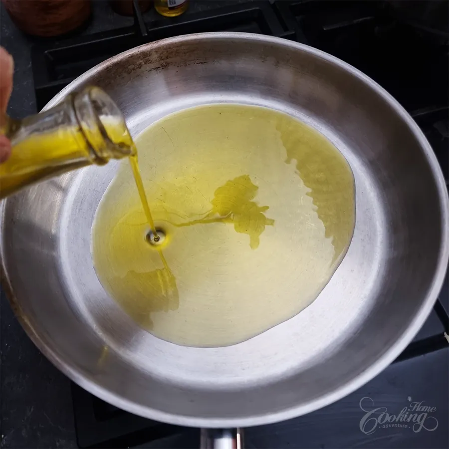 • Heat oil in a wide pan over medium heat.
