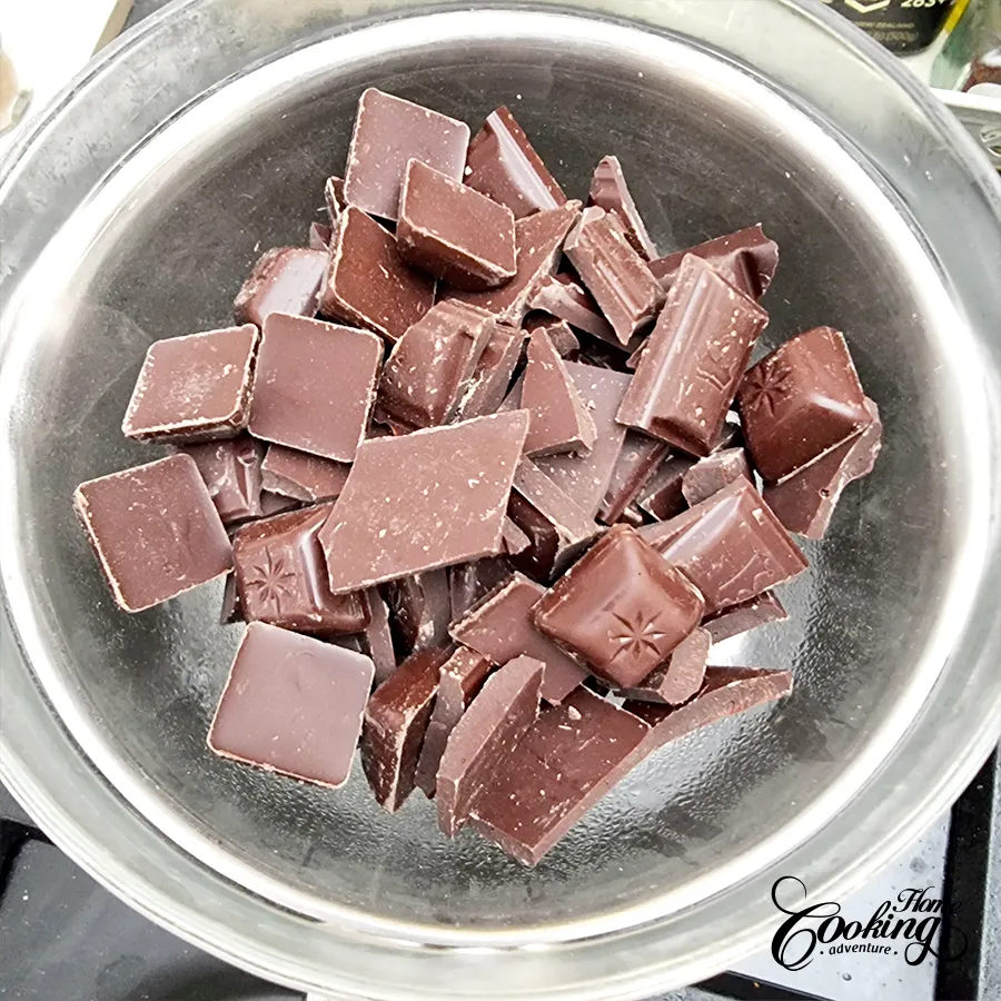 Next, melt the chocolate in the microwave using 20-second bursts, or over a double boiler, until fully smooth.