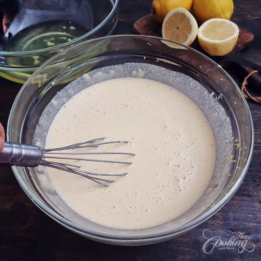 - Add the lemon zest, lemon juice, melted butter, and vanilla extract, and whisk until fully combined.
