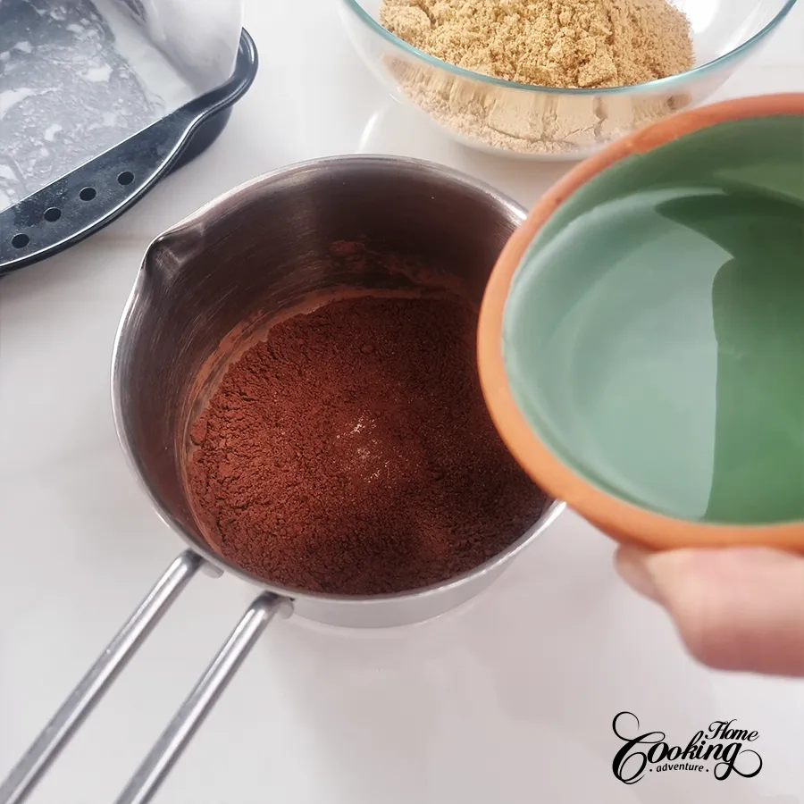 - In a saucepan, whisk together the sugar and cocoa powder.