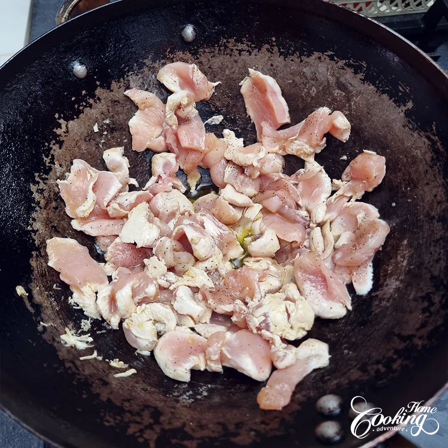 - Remove chicken from the wok and set aside.