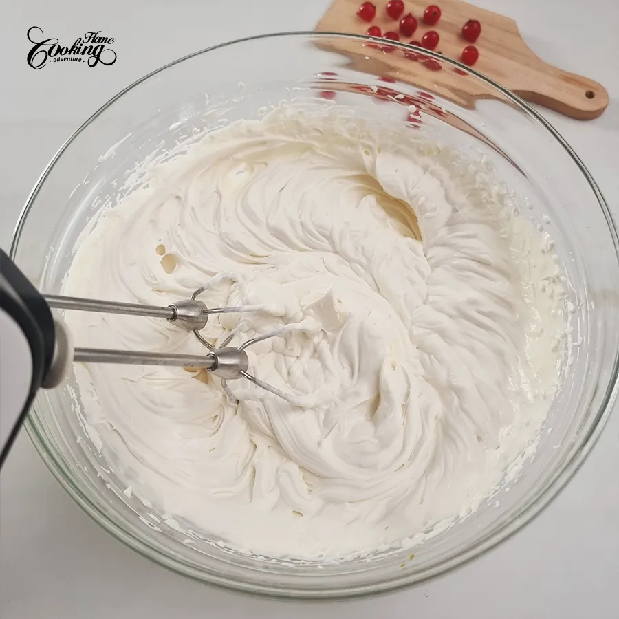 Prepare the cream cheese frosting. In a large mixing bowl, beat the cream cheese with powdered sugar and vanilla extract until smooth and creamy. Pour in the whipping cream and continue beating until the mixture forms stiff peaks.